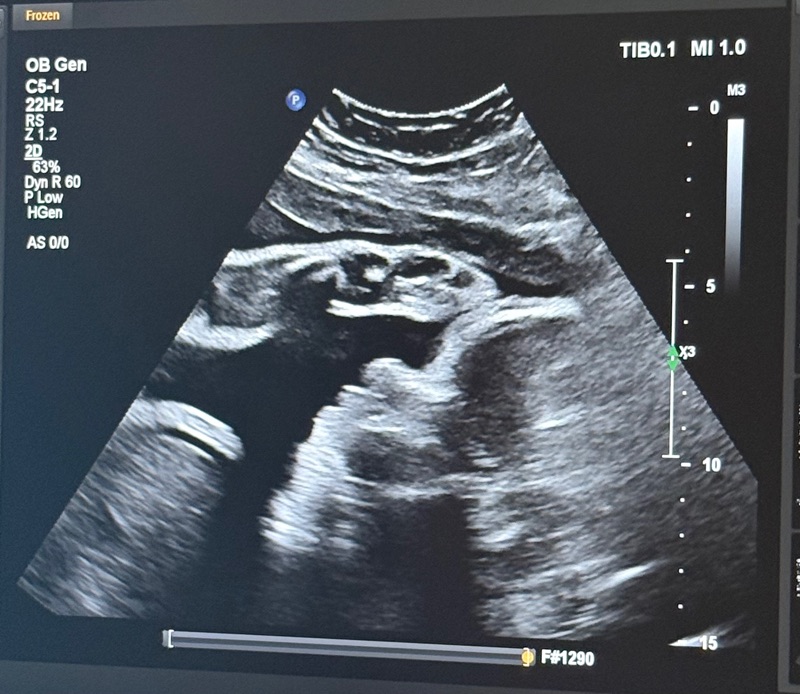 We have had a pretty good morning so far, nurses came in and gave Brandi more of the heart meds for Walker. We did just have an ultrasound to check on his heart rate, fluids, and if he is practicing breathing. According to the tech he passed all the things she wanted to see. Heart rate was still at 210. But did see him breathing. They let us take a picture of him on the monitor will attach photo. We are still waiting on talking with the OB team this morning, will more than likely talk to them after they review the ultrasound. We will keep you posted with any other updates