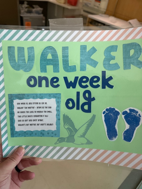We did get pictures of him with both eyes open today as well and will include them. We have other photos we will add as well. His night nurse last night made him a sign about being a week old and with a poem will include that as well.