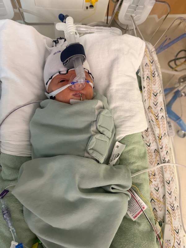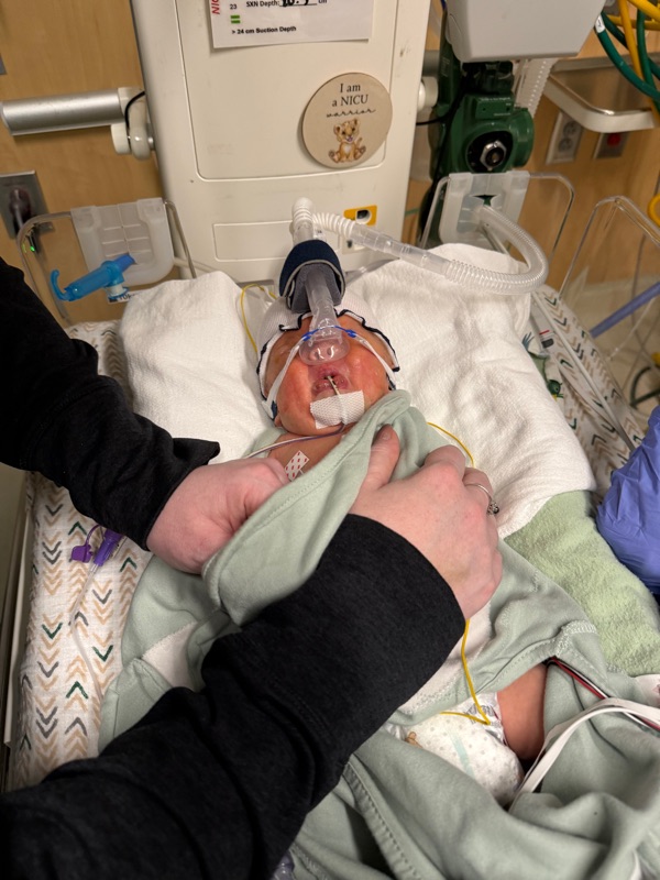 He is still extubated and is doing great with the cpap, the respiratory team did take his mask off this afternoon and let us get some photos of him without anything on his face which we really appreciated! While the mask was off he didn’t have any complications and was doing great!