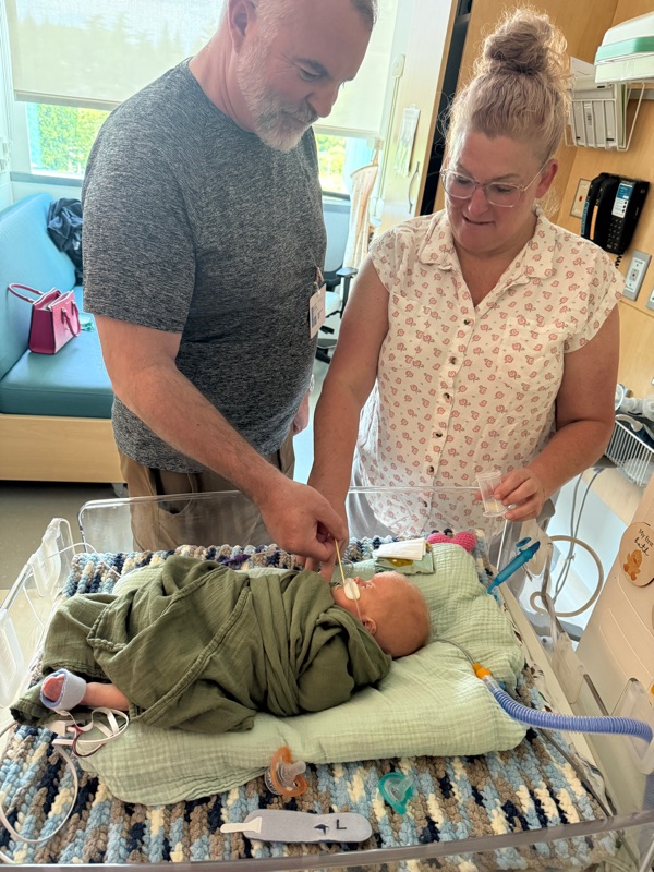 While he was still awake, grandma and grandpa Rick came down to visit with him. This was the first time that Rick has met him and found out what a lollipop is to Walker and thoroughly enjoyed giving Walker lollies.