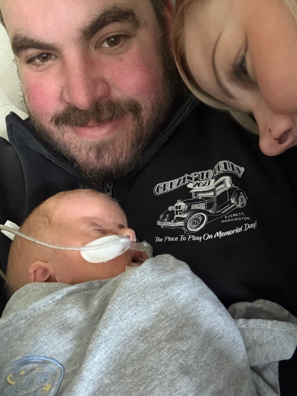 I got to hold him for an hour and a half then Brandi got him for a hour and a half then it was time for his 3 hour check up. My dad made it back down today and got to hold him today as he wanted to get held by someone and fell back asleep. While dad was holding him cranial facial stopped by to check on him and check for a cleft palate again and no signs of that which is great! The little warrior is impressing everyone now!