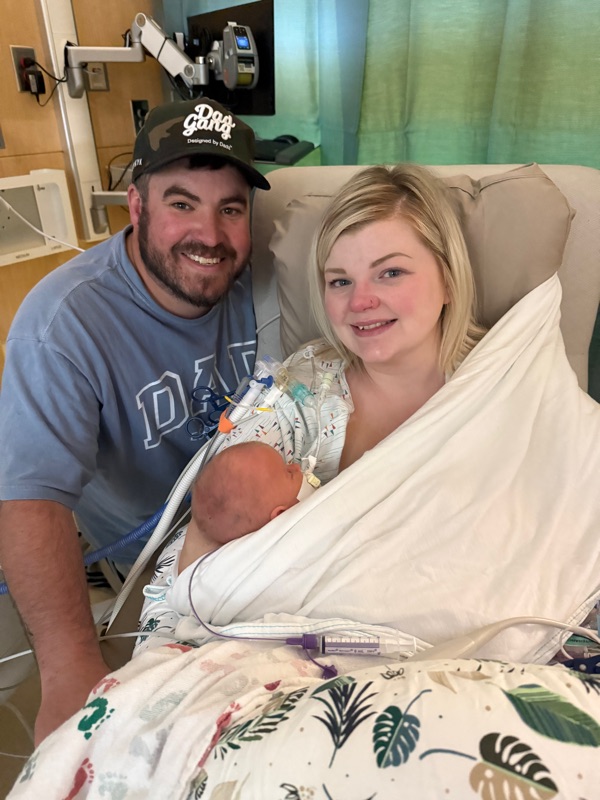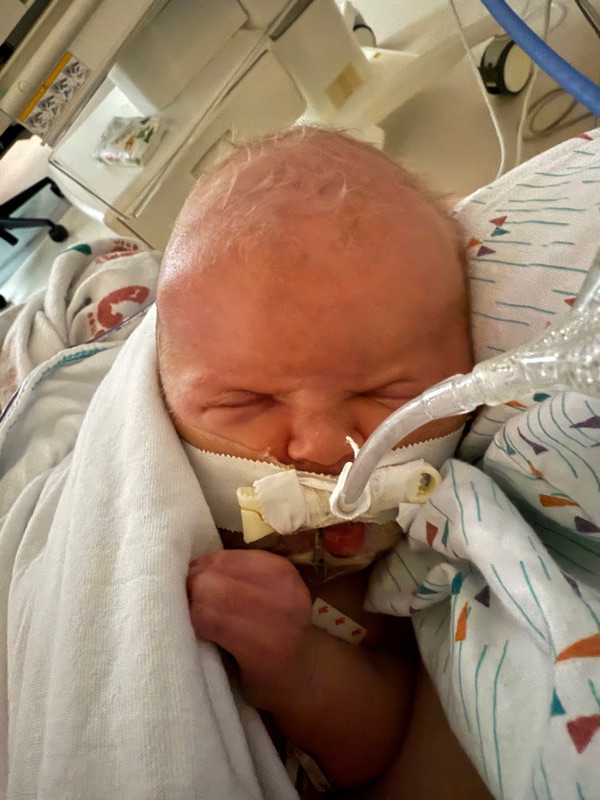 After that we got some more holding time! Brandi got to hold him for close to two hours and then she needed a break with her discomfort from healing which was totally okay. He was so happy and comfortable being with his mother he actually was able to go down on the oxygen that he needed through the vent because he was so comfortable so we now know that we need to hold him more! Kind of tricky with how many labs and needing three nurses to get him to her lap with all the wires, IVs and breathing tubes but we are going to try and do it twice a day now. At this point glamma (Janet) came down to see us and made the decision to head home and get out in some fresh air, see the dogs, hot showers, and get a great night sleep! All of the doctors told us that it was probably a good thing. The nurse said that he is in great hands and they are the best babysitters and will call us with updates!