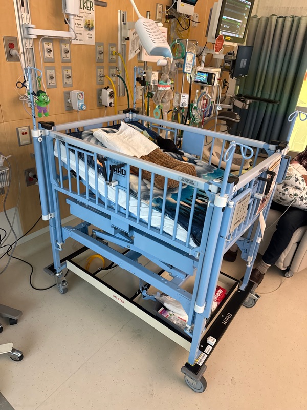 Walkers favorite nurse was with him today, she made the decision that he didn’t need his isolet anymore and was ready for a crib. When we made that change Walkers great grandfather and great grandmother came today and visited with him. They both had a great time and held him combined for 3 hours and he was sleeping the entire time. He was so great while they were there.