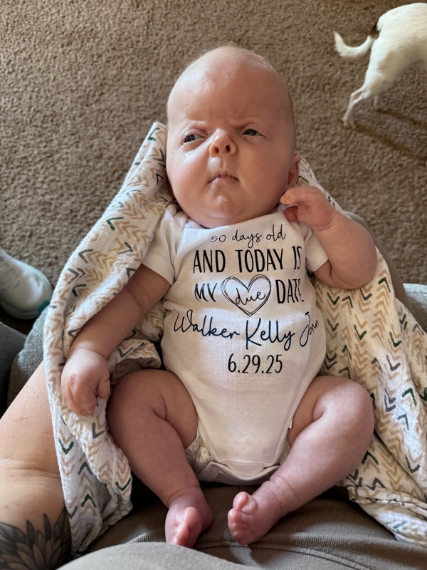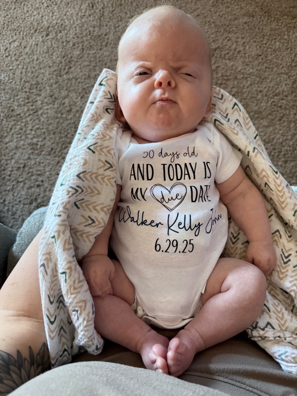 Walker really likes to wake up at 3 am and makes sure both of us are awake and take care of him. He is still doing great with his bottle feeds and loving that.