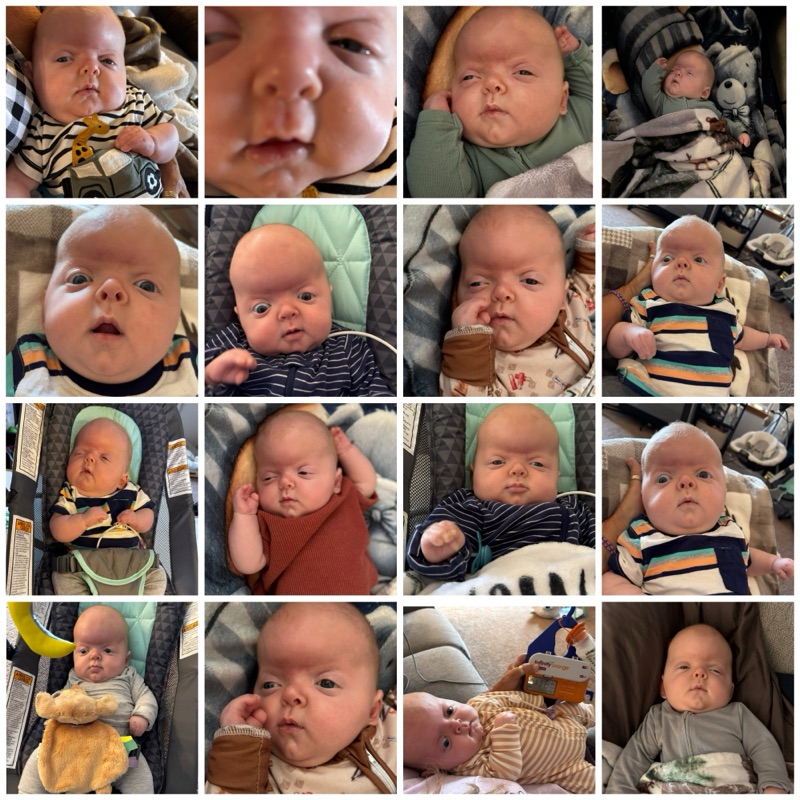 P.S. All in all, Walker is a really good baby! … he’s pretty chill almost always, except for x-rays & tummy air. His lesser favorite time & place is sometimes the changing table because he gets messed with the most there: diapering, PEG cleaning, eye drops, clothes changing. He likes to kick his feet & legs and moves his arms around a lot. Walker almost has his hands & fingers to his mouth: so close! He likes his floor time & kitchen time, and swing time - and I’m pretty sure he gave a thumbs up to our listening tribute to Ozzy Osborne’s, “No More Tears.” 👍