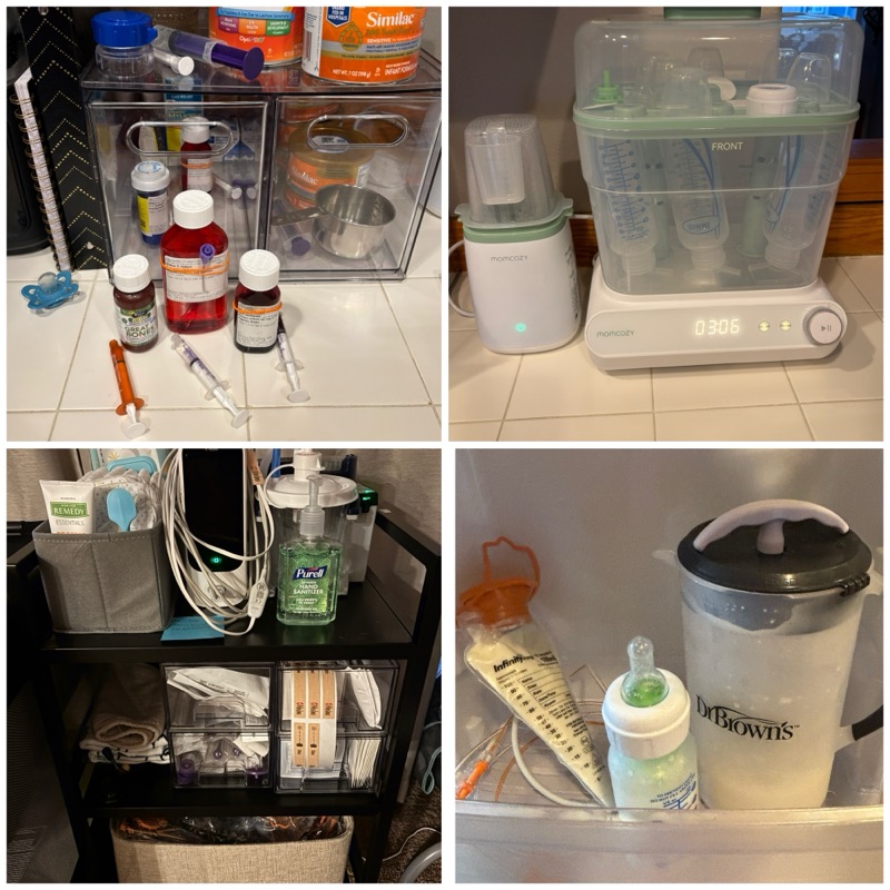 Tyler says the low SPO2 alarms are most likely from sleep apnea associated with Apert Syndrome. Also, sometimes through the night and/or during the day, the nasal aspirator is used to suction out mucus secretions to help Walker breathe more easily and to sleep better. He is used to this procedure and sleeps through the noise and annoyance. Lastly, by the numbers, it has to be said that no one taking care of Walker ever gets more than two hours of sleep at a single time in a 24 hour period - and even then, two hours is a BIG MAYBE due to time spent prepping for the next feeding and medication’s, and/or being awakened by the sensor alarms. Realistically, at best anyone might be able to get 1 to 1.5 hours of solid(🤷♀️) sleep at a time between diapering, feedings, medications, and alarms. Add to that: during the daytime include phone calls to and from doctors offices, pharmacy, insurance companies, feeding therapy and in-home visits, and many scheduled in office appointments at Seattle Children’s, Everett Children’s, or with his PCP family doctor in Smokey Point. And then there’s also housework yard work, laundry, cooking, etc.