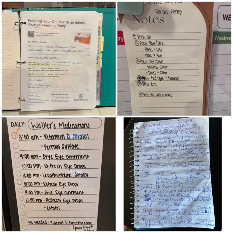 First, Tyler did an excellent job of “crash course” teaching and training me - starting with Walker’s feeding using the peg tube and the feeding pump; and second, how to give Walker’s medications through the peg tube port. And Brandi has done an excellent job of creating a detailed, 3-ring notebook of all of Walker’s care needs, including writing out step-by-step refrigerator notes of how to operate the feeding pump and a list of Walker’s daily medication times and doses. I made myself a daily “cheat sheet” to follow; and as I predicted when I first started, it took me five days to begin to feel familiar and somewhat confident and settled into Walker’s daily care routine.