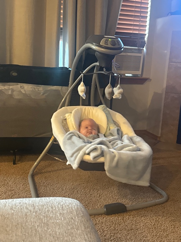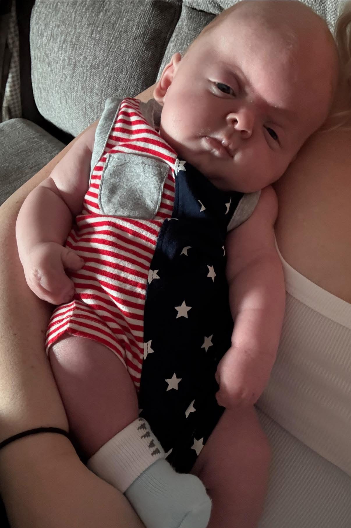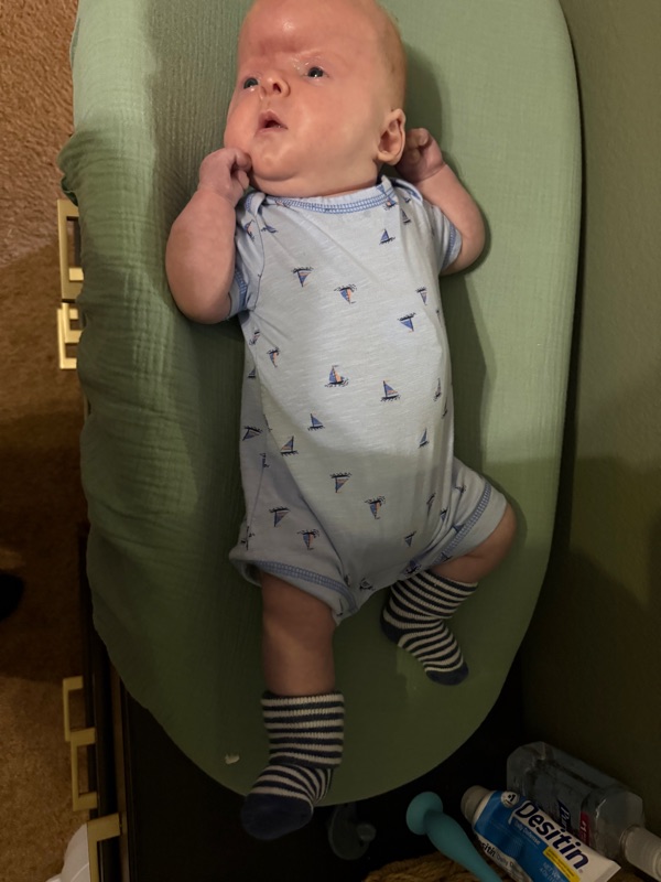 This week we learned that he is great in the car! He sleeps almost the entire time where ever we go. He met some of his cousins this week and has been loving meeting all of them. He did get his first whiff of crab on Thursday, got to go to his first party, then got to ride on the boat last night for the first time and got to see some fireworks. Glamma had his first sleepover with him this week. Got to go to Costco for the first time today, they did tell us while we were leaving that there is no returns on him and if we aren’t careful there is a buy on get one free with him (we both laughed).